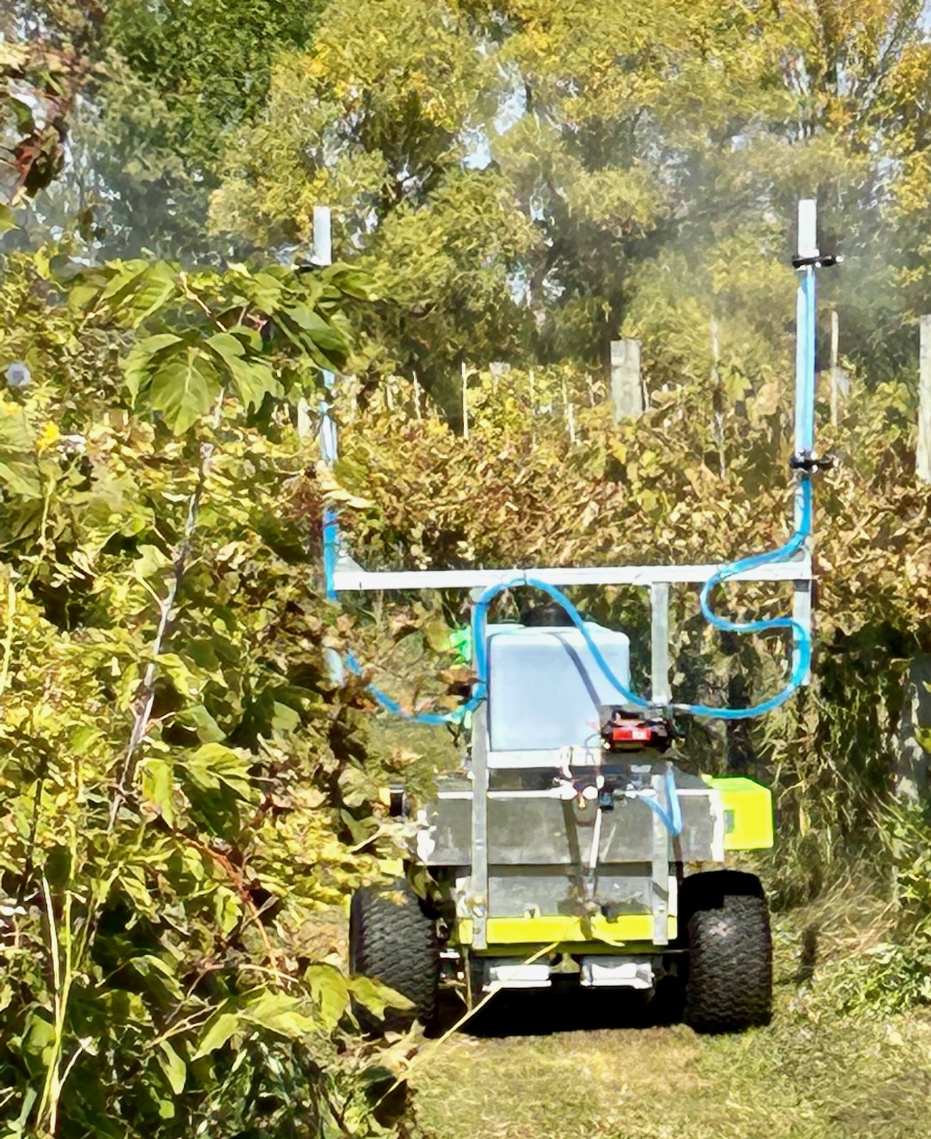 Enhancements to the autonomous drone sprayer will continue. Two cameras, a lidar sensor for obstacle detection, and GPS software so the sprayer will drive by itself will be added in 2023. The vineyard.icecycle.com website will provide updates as the project progresses.