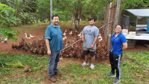 The problem at hand is the expensive importation of commercial poultry feeds that farmers access to sustain their poultry farming. The farmer is proposing a research effort to scale up the preliminary version of poultry local feed at his farm. The project would include utilizing manpower to gather local ingredients on island and processing the feed at the ranch. The research would also prospect the mixture of both imported feeds and local ingredients feed to gauge poultry welfare while feeding on the local feed or the mixture. The controlled, balanced and nutritious diet of the poultry is critical and the research on the local feed and the mixture feed will determine the number of eggs laid and the number of years the poultry will lay eggs for the farmers. The research will include the observation and comparison of the physical characteristics, including weight, of the poultry throughout the project and upon ‘retirement’ when they are harvested for stewing meat. The project is significant because it addresses the possible economical means to support the poultry farming in Guam. The project also does not harm the environment as it is solely focused on the collection and harvesting of local vegetation. The mixture feed would be the infusion of the local mix with the approved imported feeds sold on island. This research would advance sustainable agriculture should the local feed ingredients information be available and shared locally. The local feed project will turn the farm into a demonstration center for students, educators, researchers and farmers to avail information on the production.